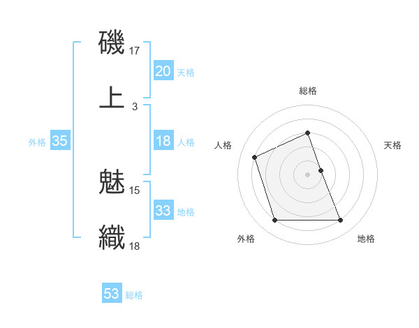 磯上 魅織さんを姓名の画数から五運を鑑定