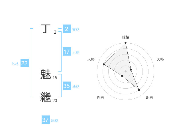 丁 魅繼さんを姓名の画数から五運を鑑定