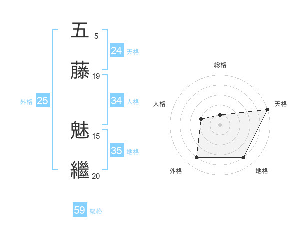 五藤 魅繼さんの総格は59画の1点!