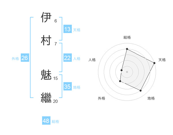 伊村 魅繼さんを姓名の画数から五運を鑑定