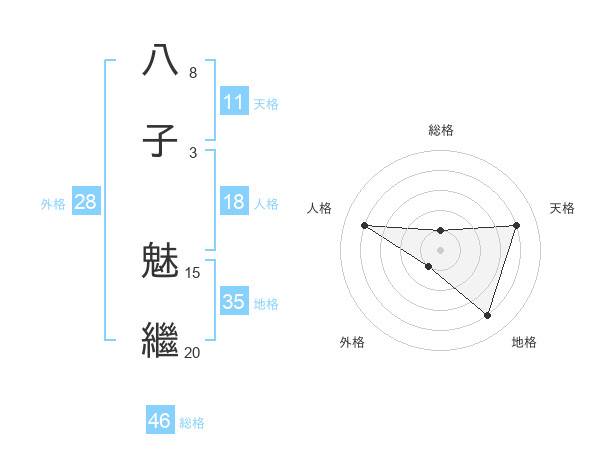 八子 魅繼さんの外格は28画の1点!