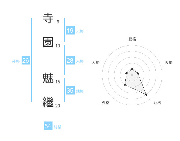 寺園 魅繼さんの天格は19画の1点!