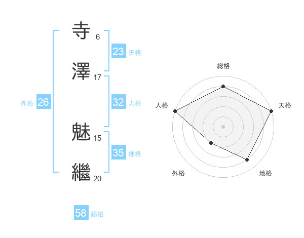 寺澤 魅繼さんの総格は58画の4点!