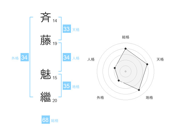 斉藤 魅繼さんを姓名の画数から五運を鑑定