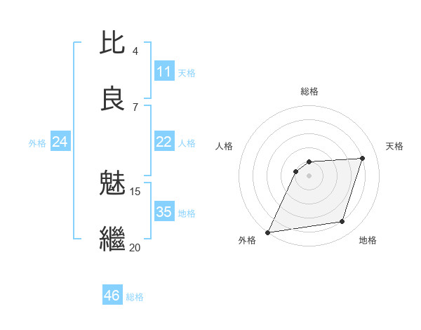 比良 魅繼さんの外格は24画の5点!