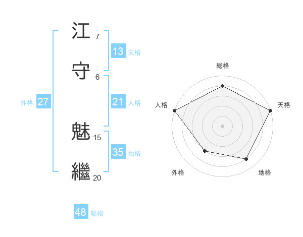江守 魅繼さんを姓名の画数から五運を鑑定