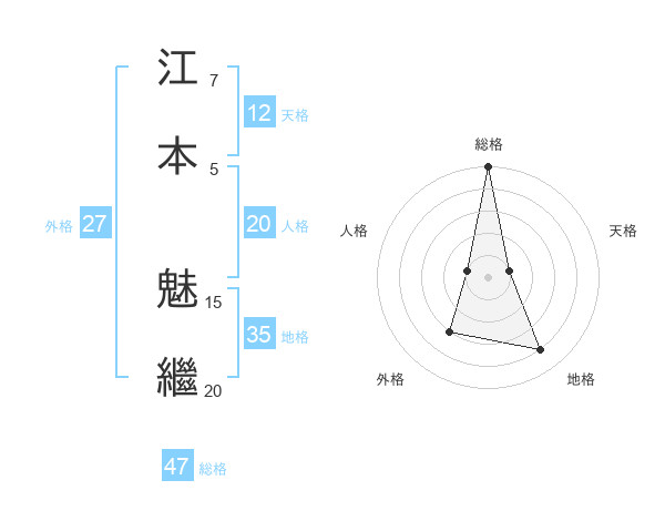 江本 魅繼さんを姓名の画数から五運を鑑定