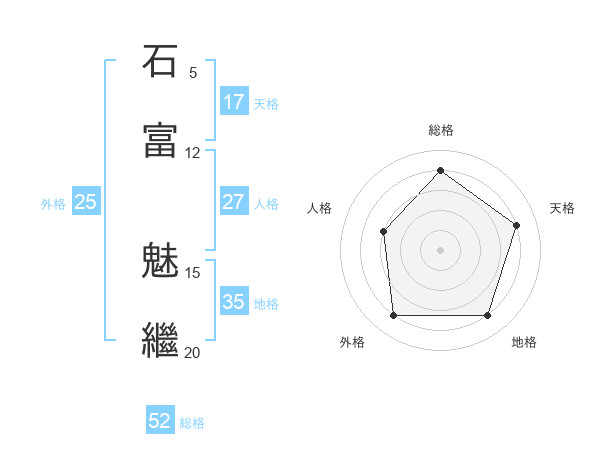 石富 魅繼さんの総格は52画の4点!
