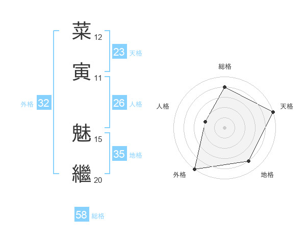 菜寅 魅繼さんの外格は32画の5点!