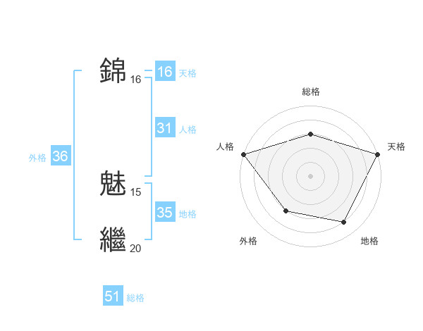 錦 魅繼さんの総格は51画の3点!
