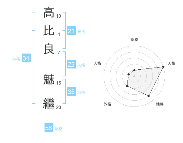高比良 魅繼さんの天格は21画の5点!