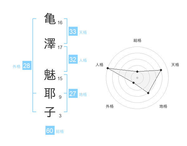 亀澤 魅耶子さんの総格は60画の1点!