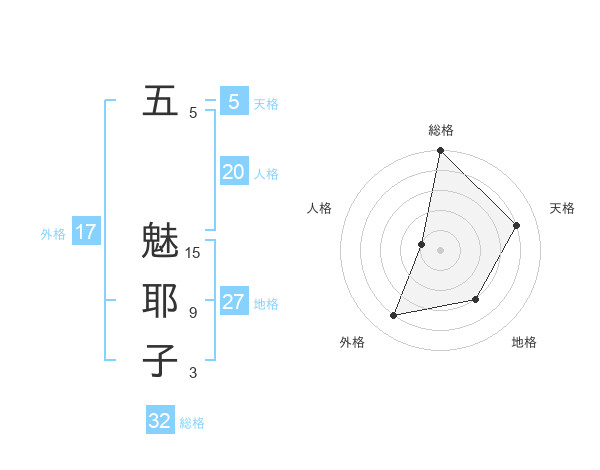五 魅耶子さんの総格は32画の5点!