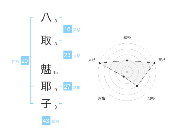 八取 魅耶子さんを姓名の画数から五運を鑑定