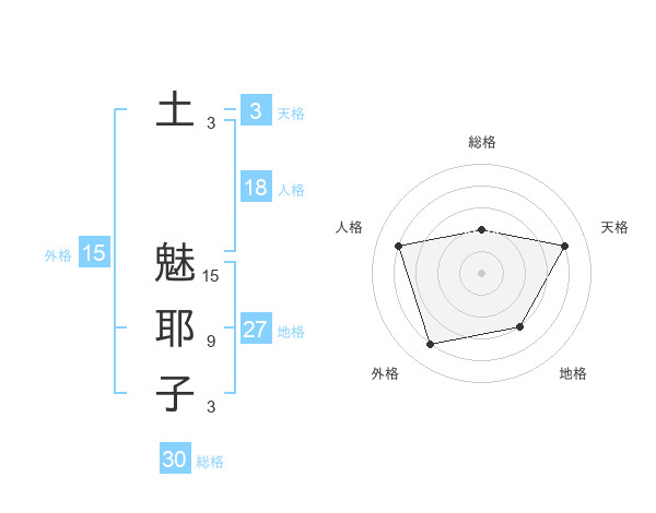 土 魅耶子さんの総格は30画の2点!