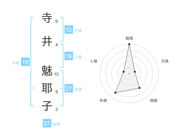 寺井 魅耶子さんの総格は37画の5点!