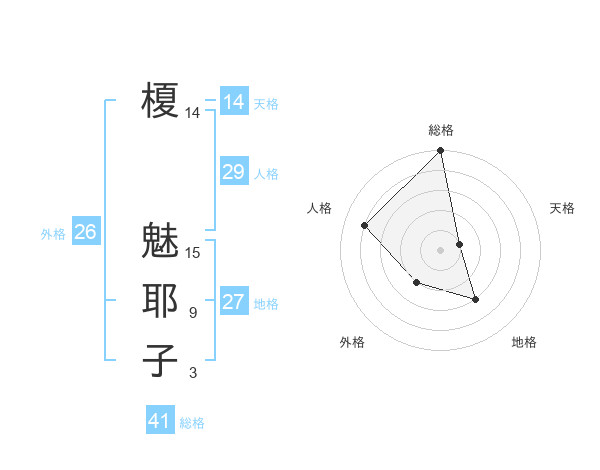 榎 魅耶子さんを姓名の画数から五運を鑑定