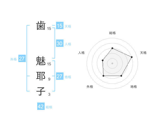 歯 魅耶子さんの天格は15画の4点!