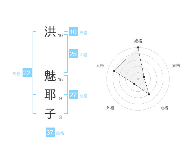洪 魅耶子さんの総格は37画の5点!
