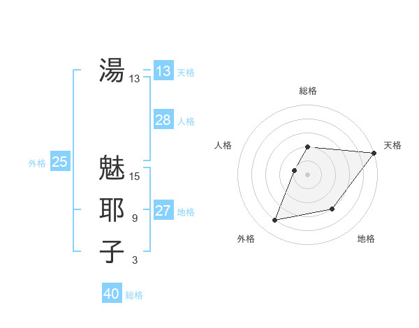 湯 魅耶子さんの天格は13画の5点!