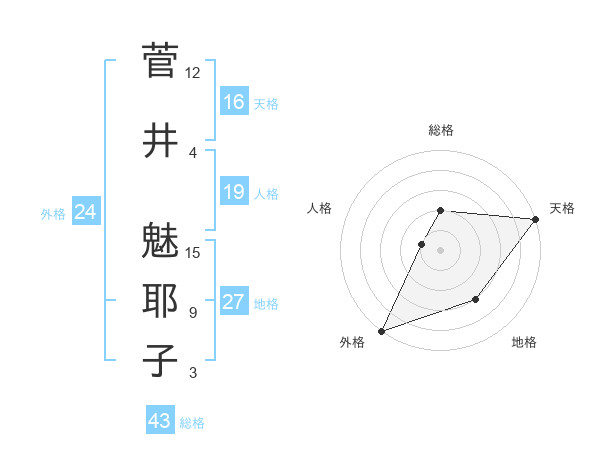 菅井 魅耶子さんを姓名の画数から五運を鑑定