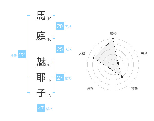 馬庭 魅耶子さんを姓名の画数から五運を鑑定