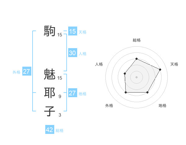 駒 魅耶子さんを姓名の画数から五運を鑑定