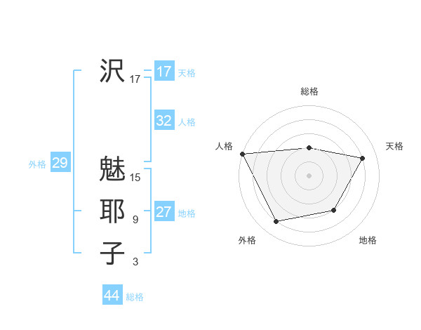 沢 魅耶子さんを姓名の画数から五運を鑑定