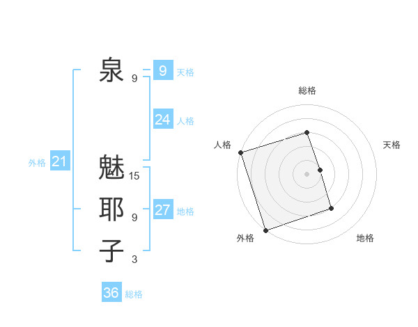 泉 魅耶子さんを姓名の画数から五運を鑑定