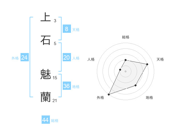 上石 魅蘭さんの総格は44画の2点!