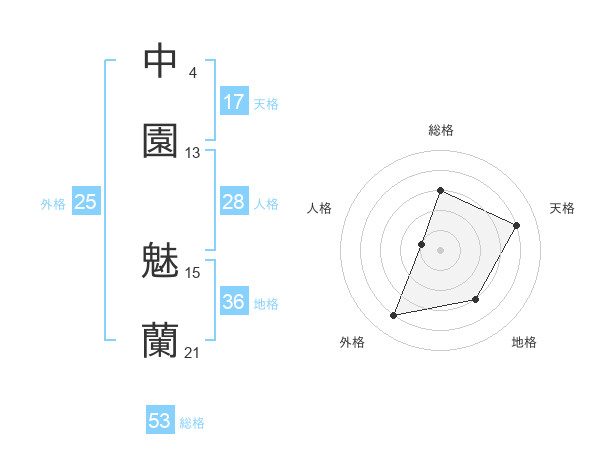中園 魅蘭さんの総格は53画の3点!