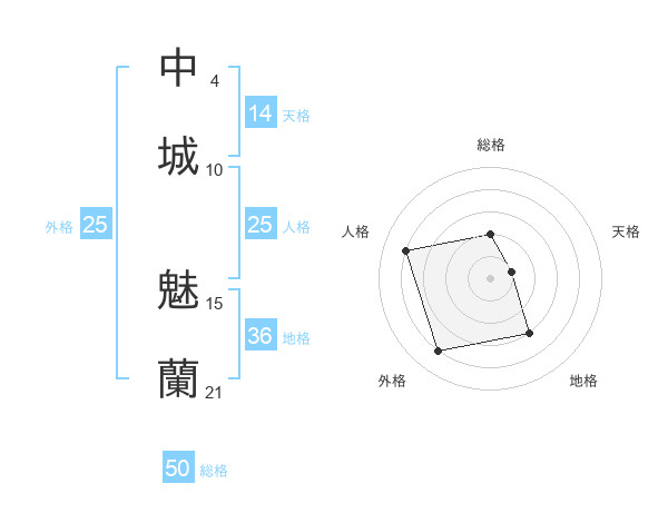中城 魅蘭さんの総格は50画の2点!