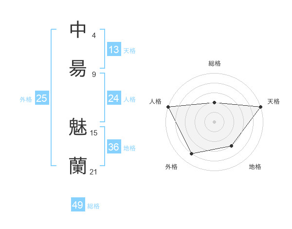 中昜 魅蘭さんを姓名の画数から五運を鑑定