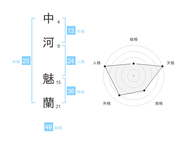 中河 魅蘭さんの天格は13画の5点!
