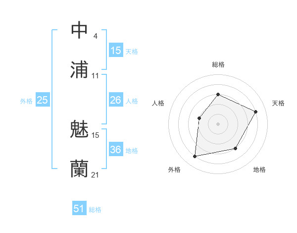 中浦 魅蘭さんの総格は51画の3点!