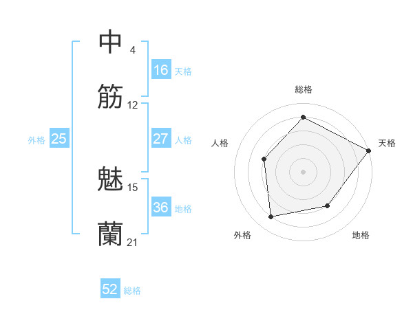 中筋 魅蘭さんの総格は52画の4点!
