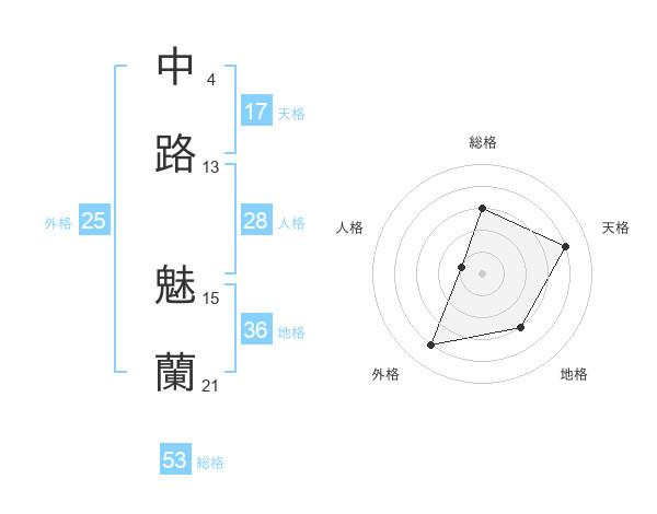 中路 魅蘭さんの天格は17画の4点!