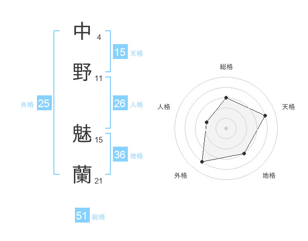中野 魅蘭さんを姓名の画数から五運を鑑定