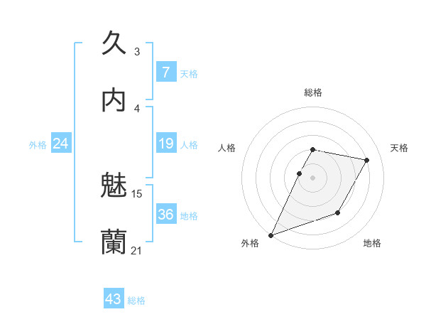 久内 魅蘭さんの天格は7画の4点!
