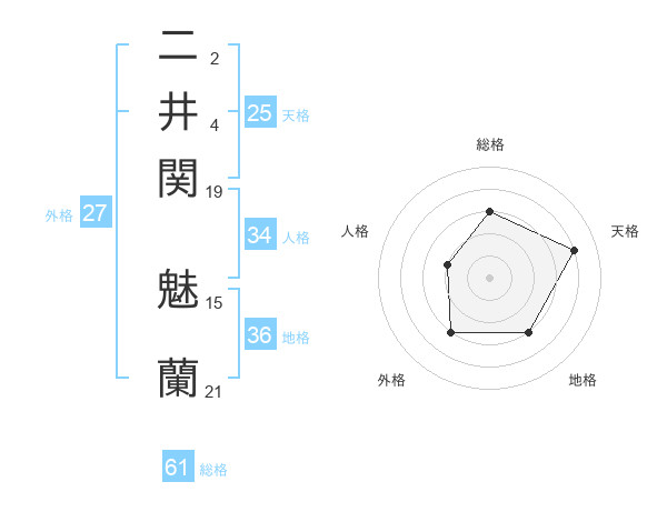二井関 魅蘭さんを姓名の画数から五運を鑑定