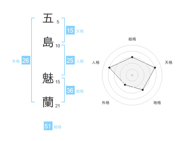 五島 魅蘭さんを姓名の画数から五運を鑑定