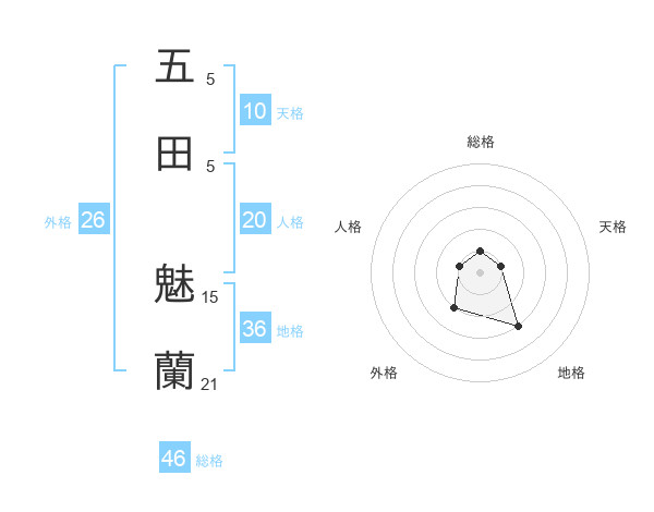 五田 魅蘭さんの外格は26画の2点!