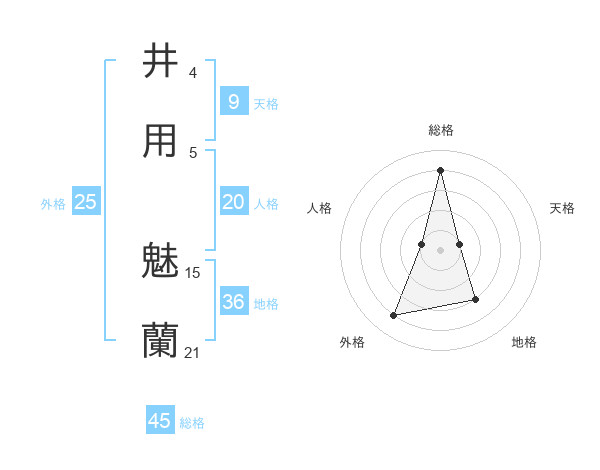井用 魅蘭さんの総格は45画の4点!