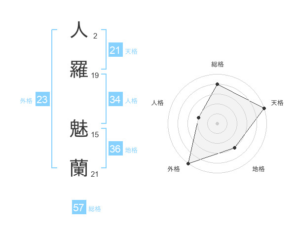 人羅 魅蘭さんを姓名の画数から五運を鑑定