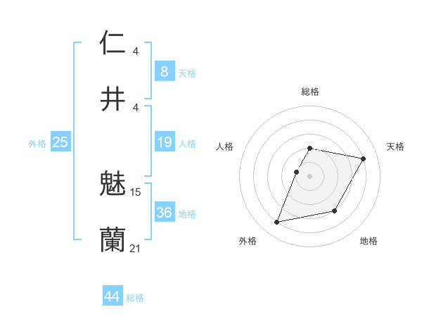 仁井 魅蘭さんを姓名の画数から五運を鑑定