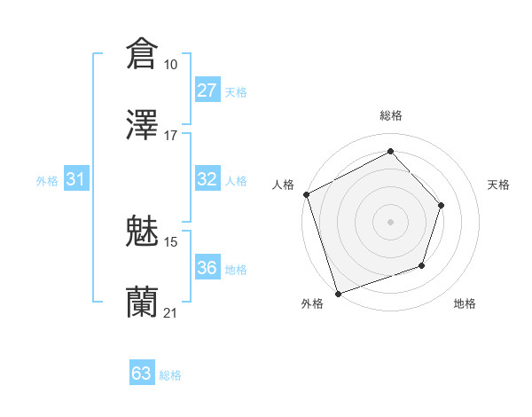 倉澤 魅蘭さんの外格は31画の5点!