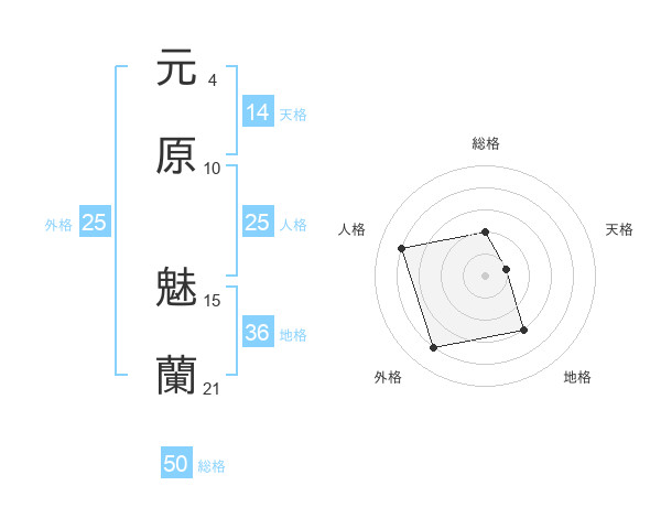 元原 魅蘭さんの総格は50画の2点!