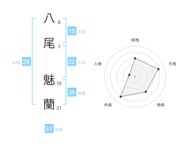 八尾 魅蘭さんを姓名の画数から五運を鑑定