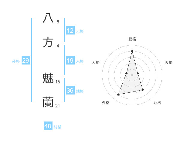 八方 魅蘭さんの総格は48画の4点!