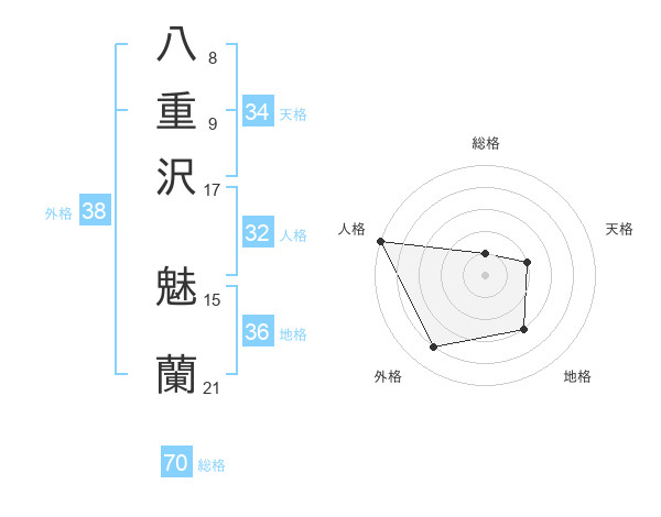 八重沢 魅蘭さんの総格は70画の1点!
